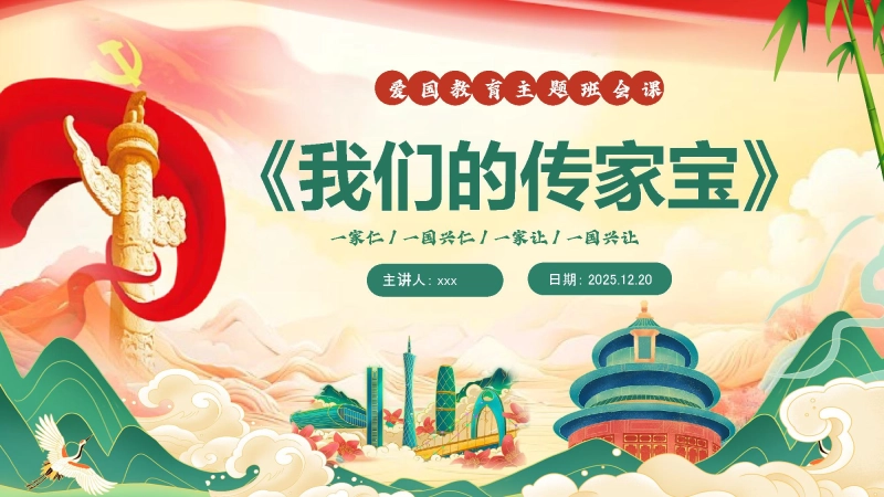 【通用】【爱国教育】主题班会:一件传家宝,一脉中国情,我们的传家宝