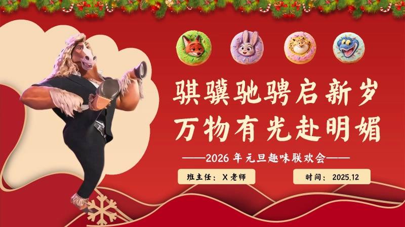 【通用】2026元旦主题联欢班会:骐骥驰骋启新岁,万物有光赴明媚(疯狂动物城)